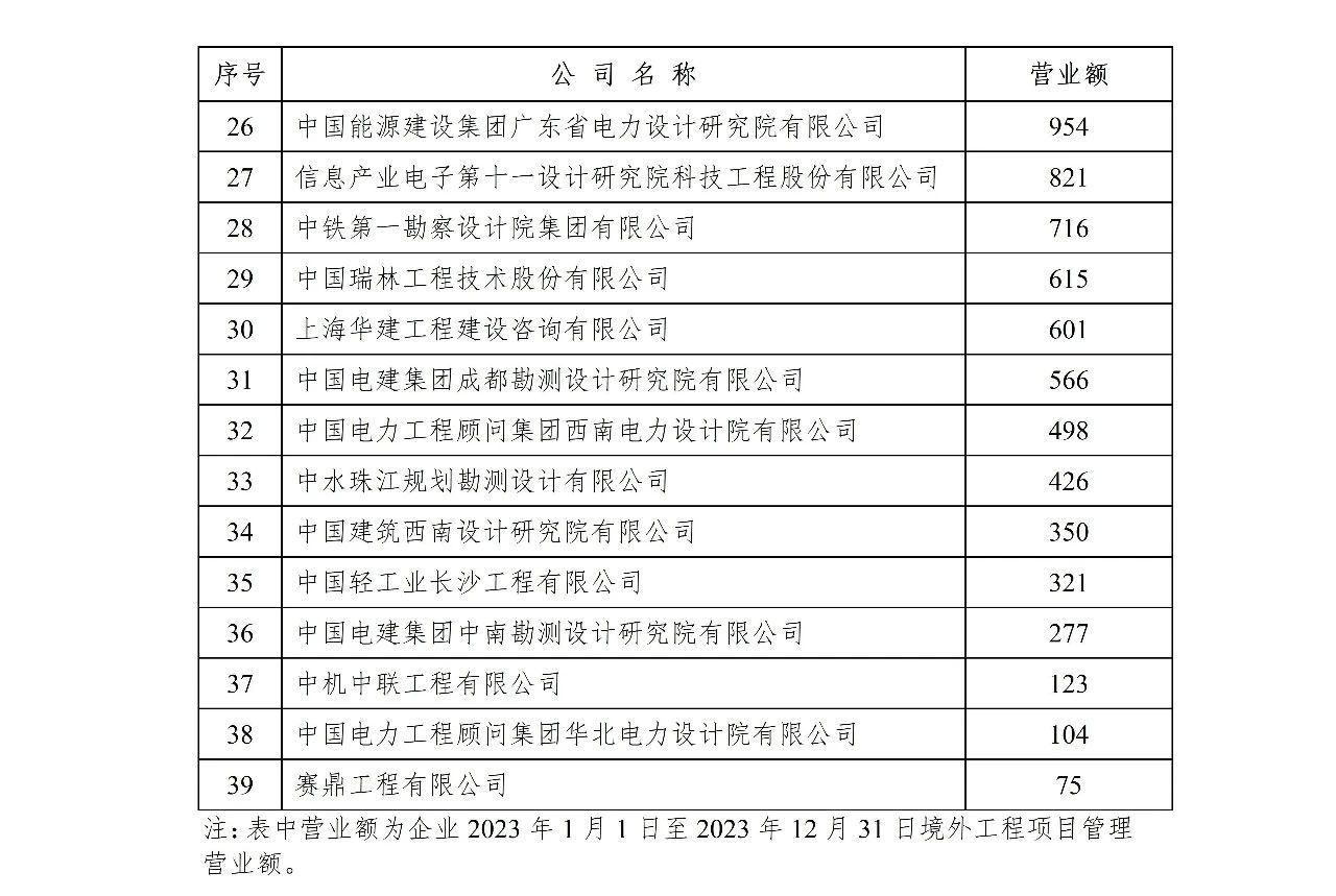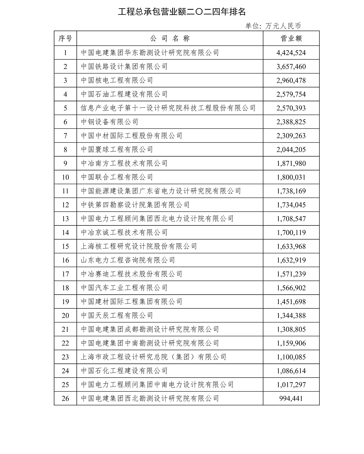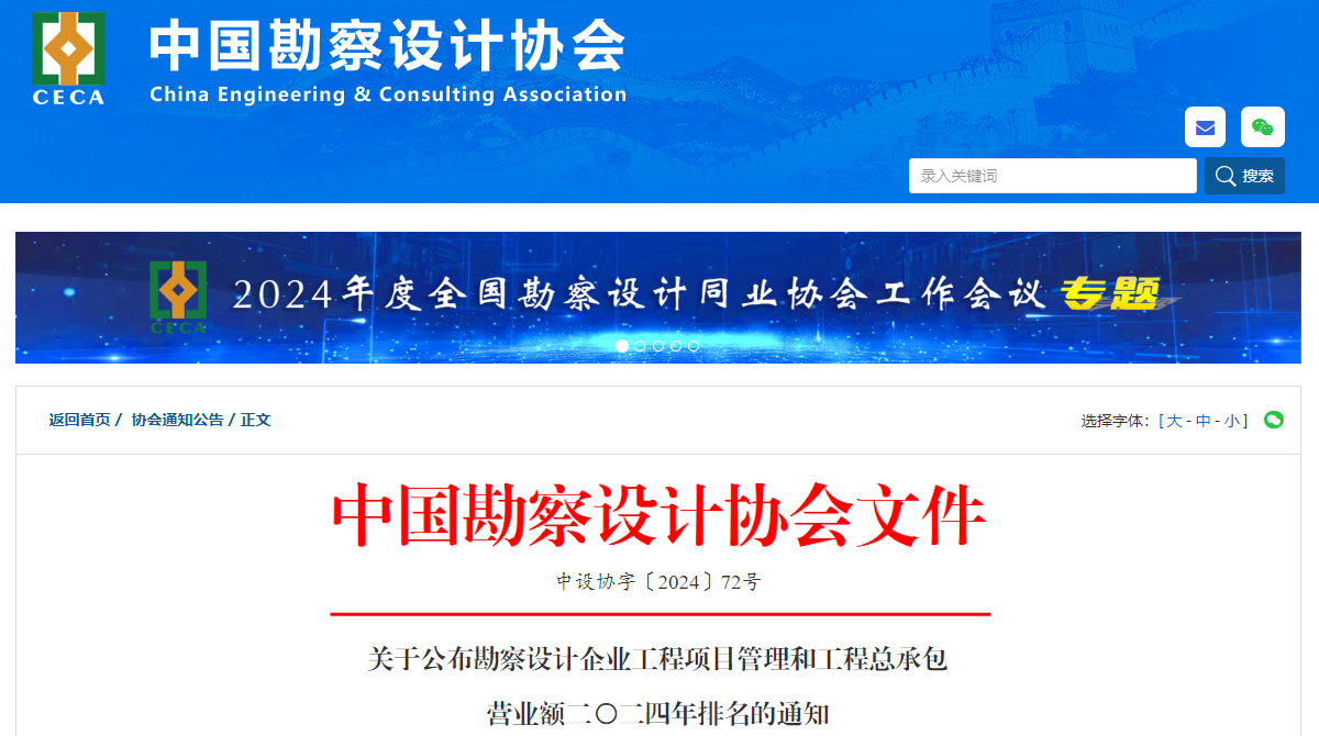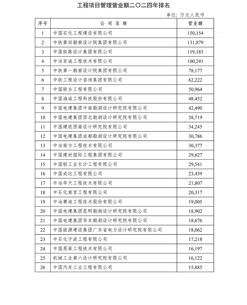 关于公布勘察设计企业工程项目管理和工程总承包营业额二〇二四年排名的通知