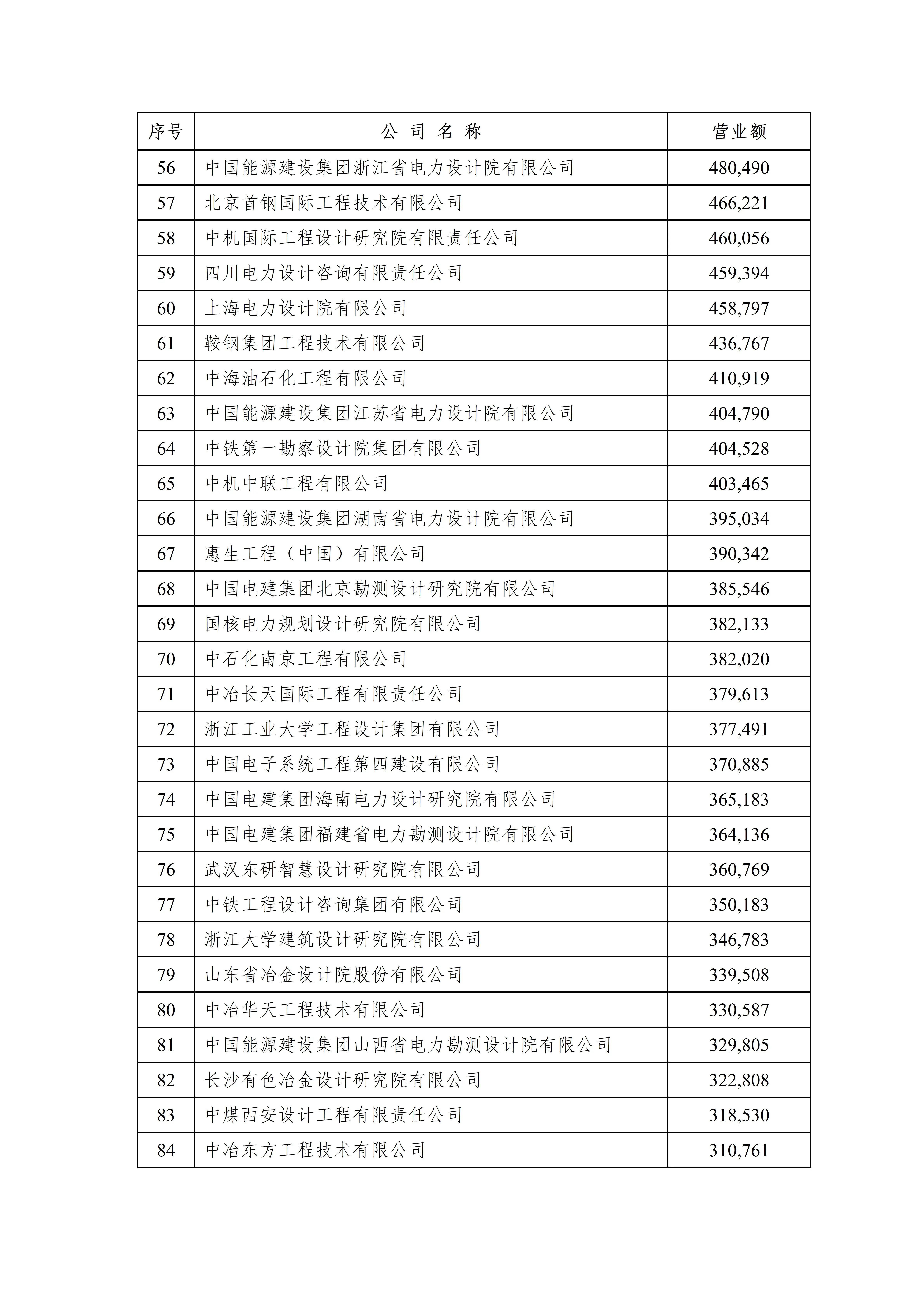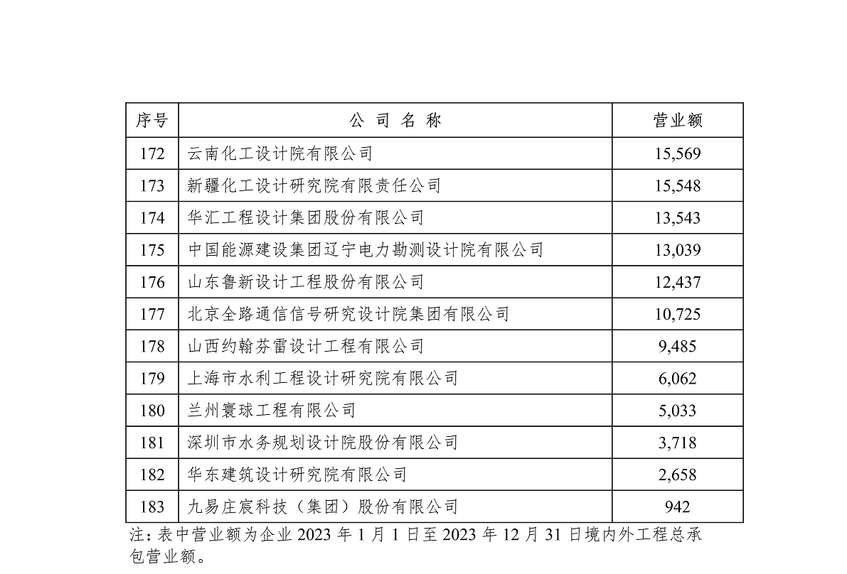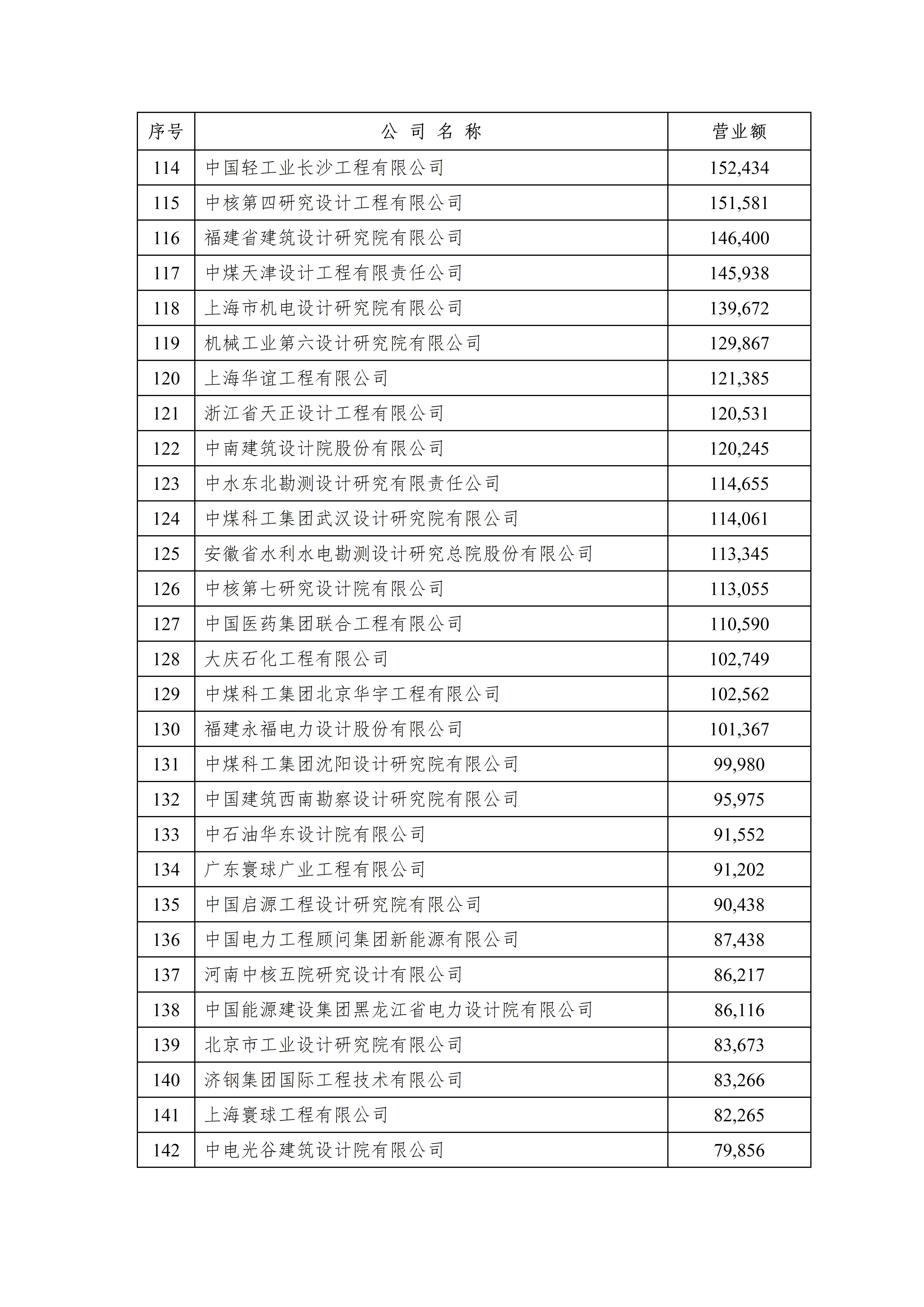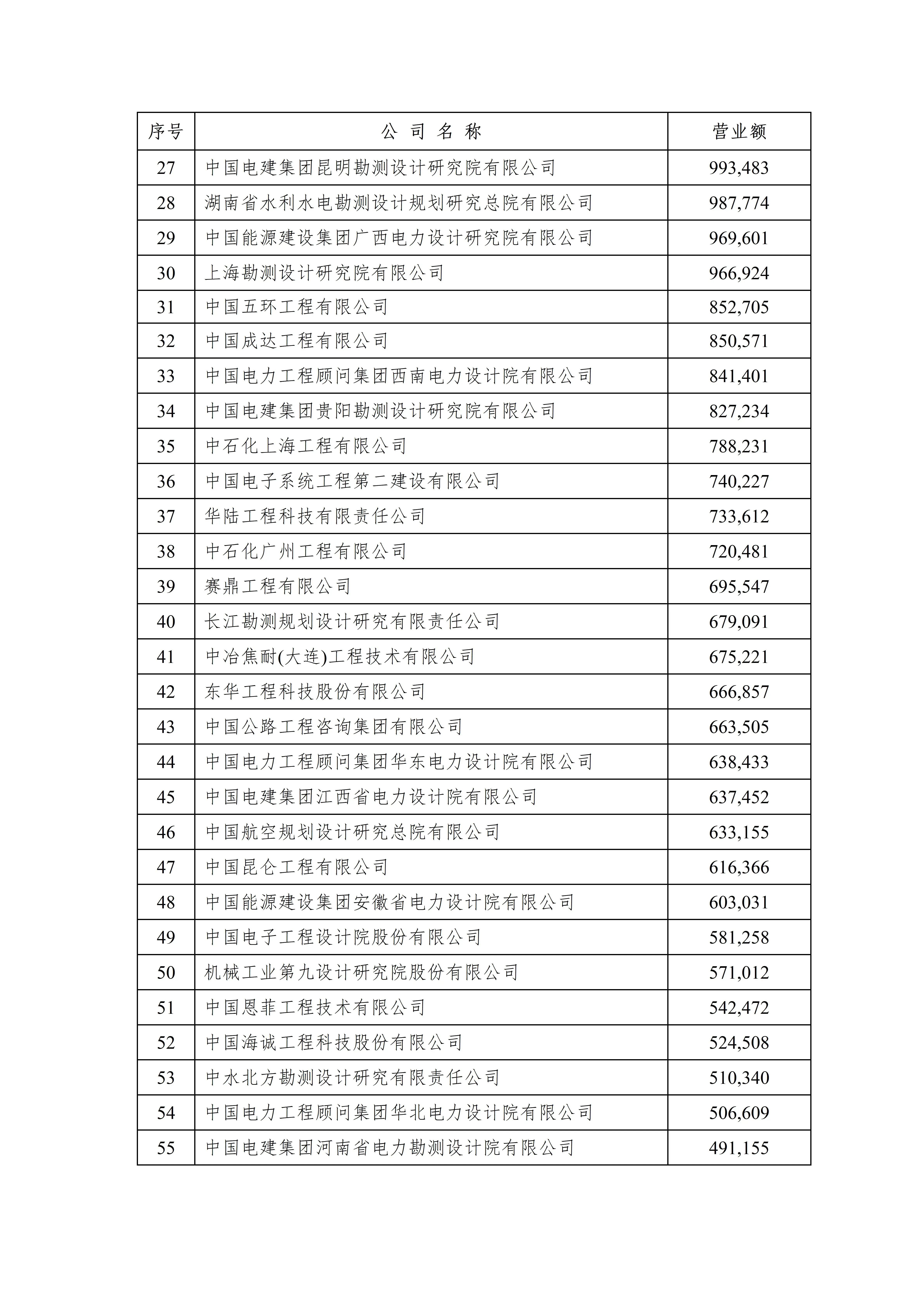 关于公布勘察设计企业工程项目管理和工程总承包营业额二〇二四年排名的通知