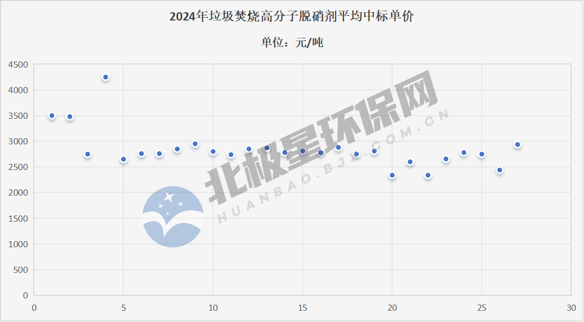 高分子脱硝剂是高分子脱硝技术的核心,它以高分子材料为载体,将氨基成分聚合负载在高分子材料上,形成粉体状材质。据北极星不完全统计,2024年垃圾焚烧市场高分子脱硝剂中标项目45个,规模超4500吨。北极星基于公开资料整理,若有疏漏敬请谅解。