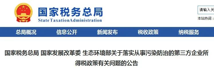 国家税务总局 国家发展改革委 生态环境部关于落实从事污染防治的第三方企业所得税政策有关问题的公告