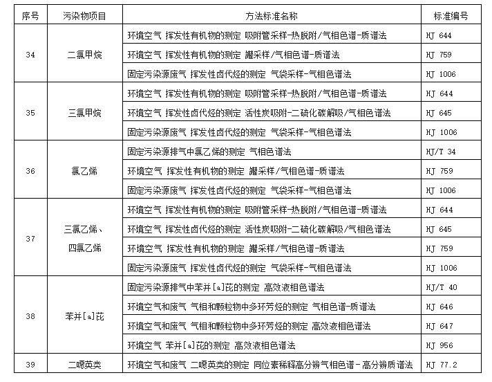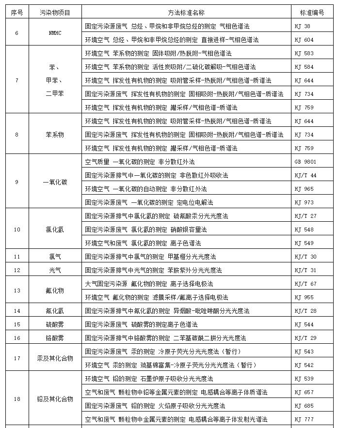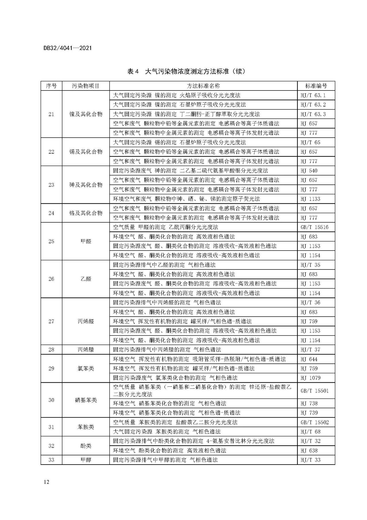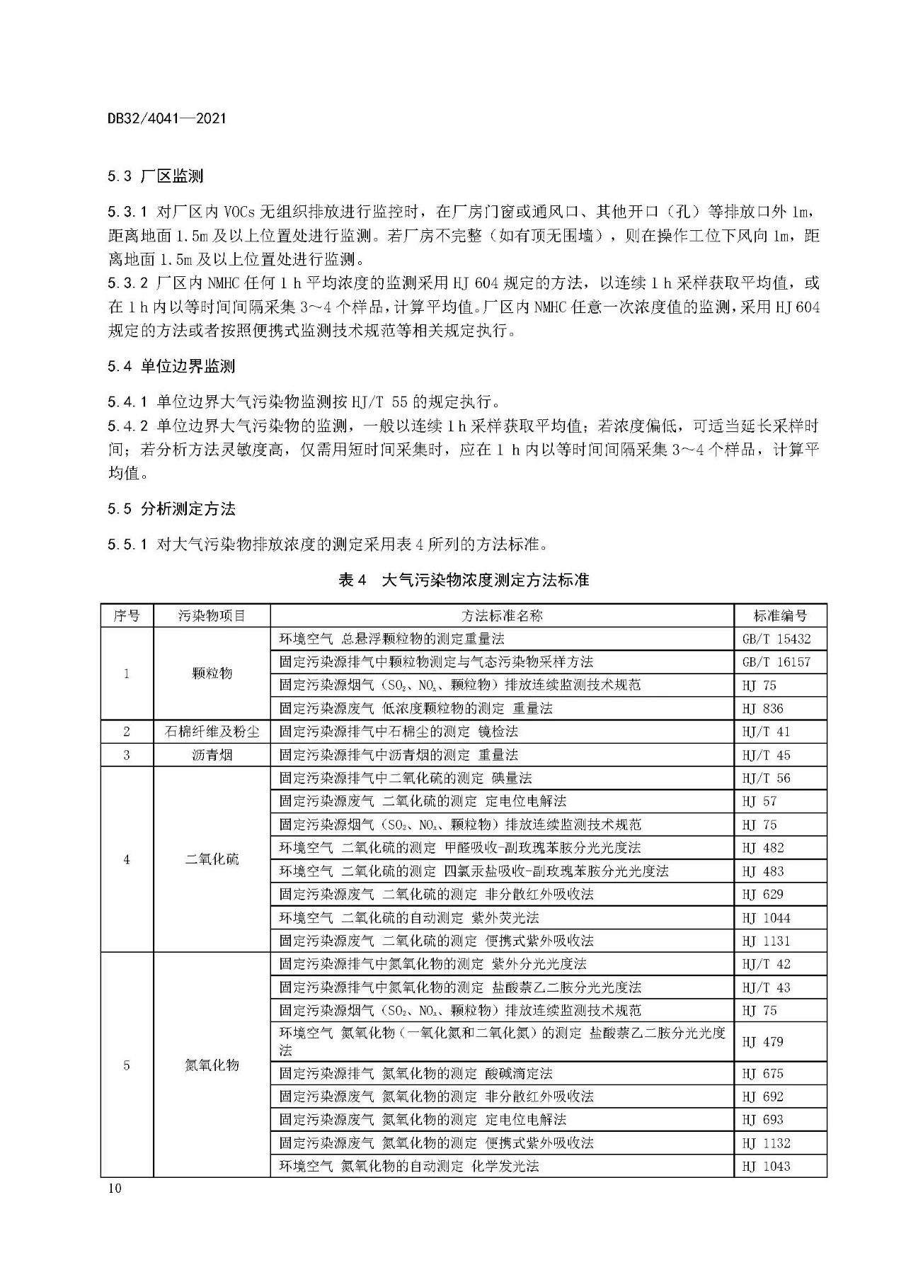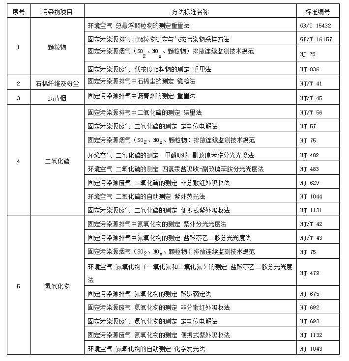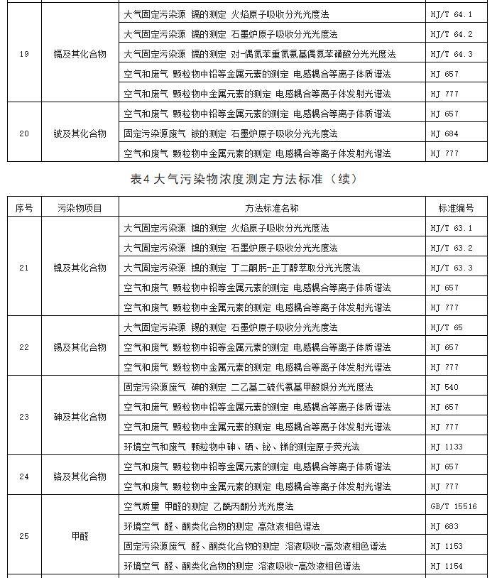 5.5.1对大气污染物排放浓度的测定采用表4所列的方法标准。