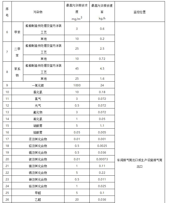 2、非甲烷总烃(NHMC)的排放限制为60,苯为1(NHMC除船舶制造预处理及室内涂装工艺外,70);
