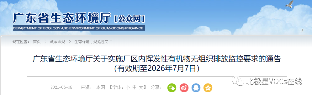 来源于:广东省生态环境厅 转载于: 2021年6月9日北极星VOCs在线