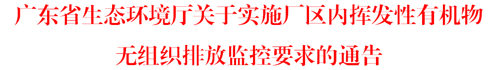 为强化挥发性有机物(VOCs)综合治理,严格落实无组织排放控制标准,切实减少VOCs排放,促进空气质量持续改善,根据生态环境部、国家市场监管总局《挥发性有机物无组织排放控制标准》(GB 37822-2019)等规定,经省人民政府同意,现就实施厂区内挥发性有机物无组织排放监控要求有关事项通告如下: