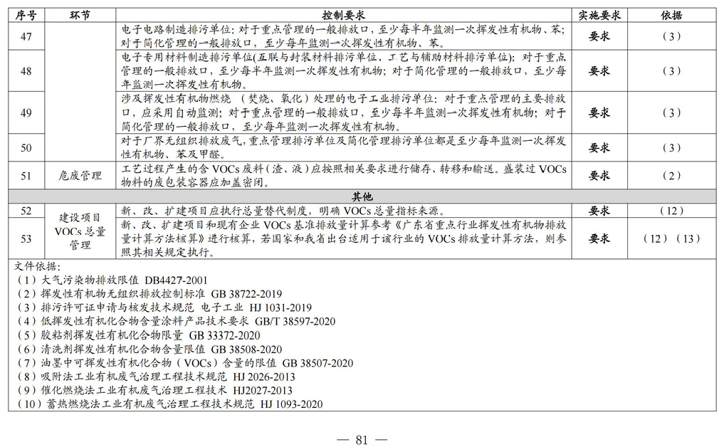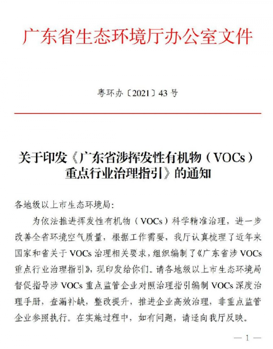 为依法推进挥发性有机物(VOCs)科学精准治理,进一步改善全省环境空气质量,根据工作需要,广东省生态环境厅认真梳理了近年来国家和省关于 VOCs 治理相关要求,组织编制了《广东省涉 VOCs重点行业治理指引》,请各地级以上市生态环境局督促指导涉 VOCs 重点监管企业对照治理指引编制VOCs 深度治理手册,查漏补缺,整改提升,推进企业高效治理,非重点监管企业参照执行。