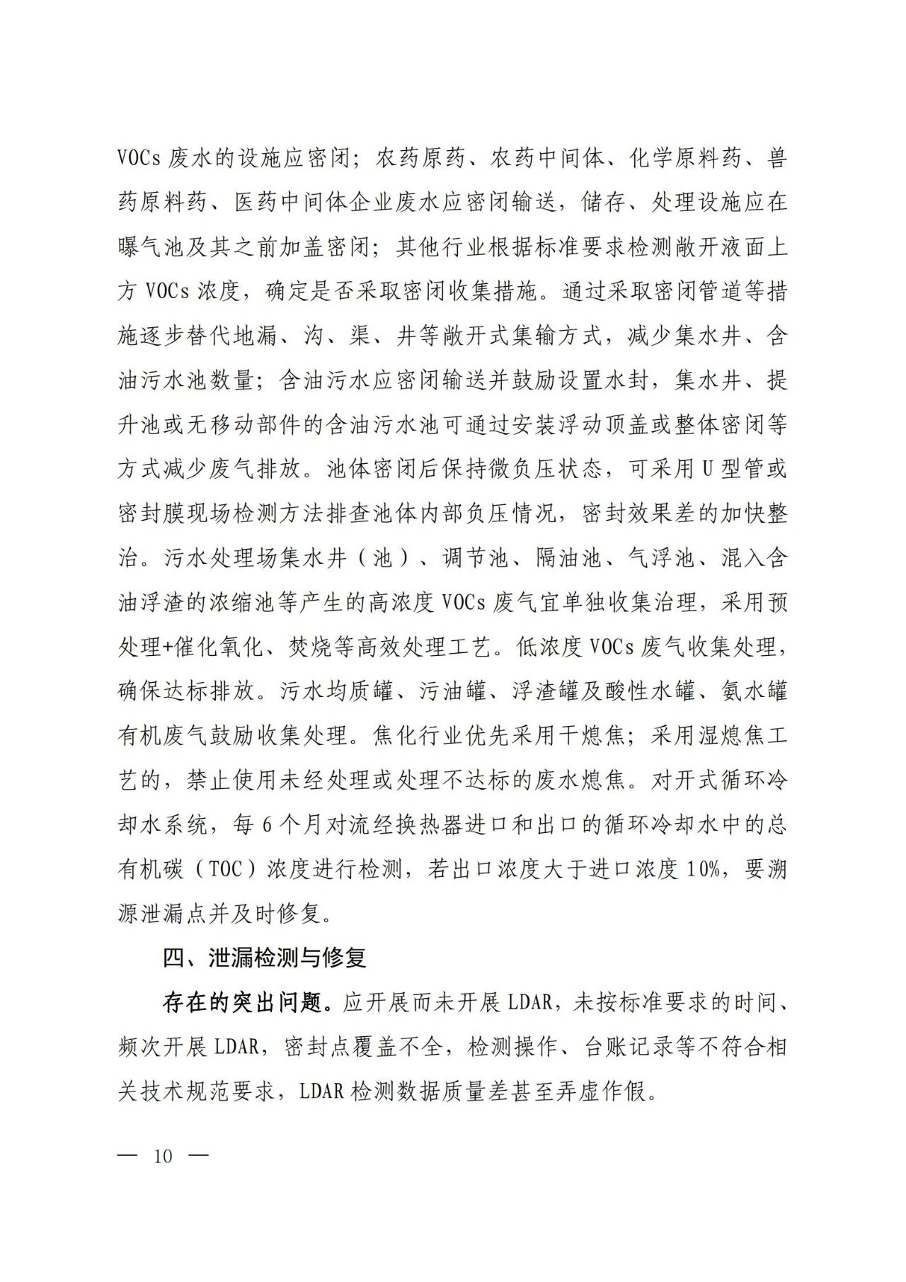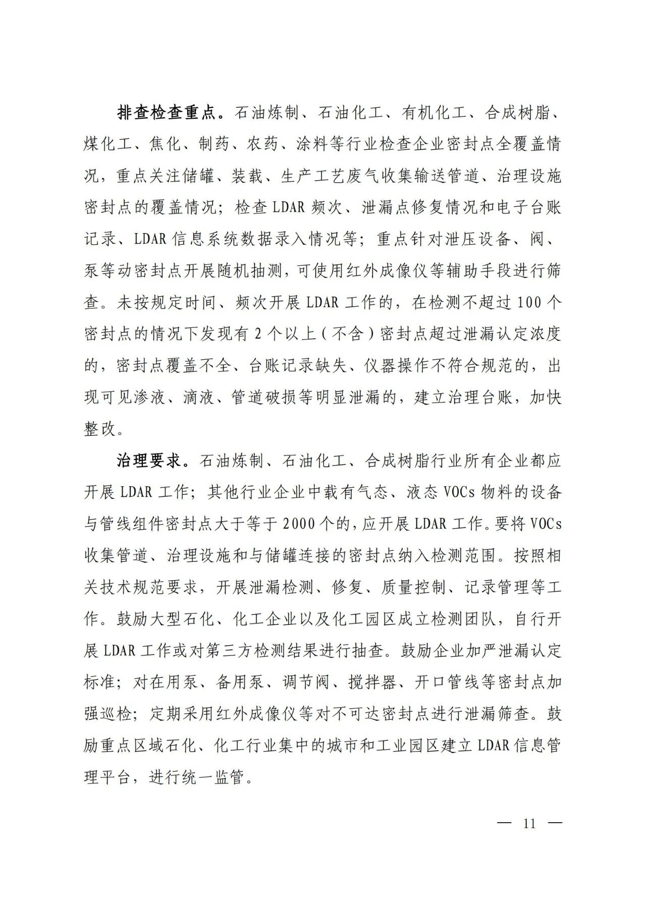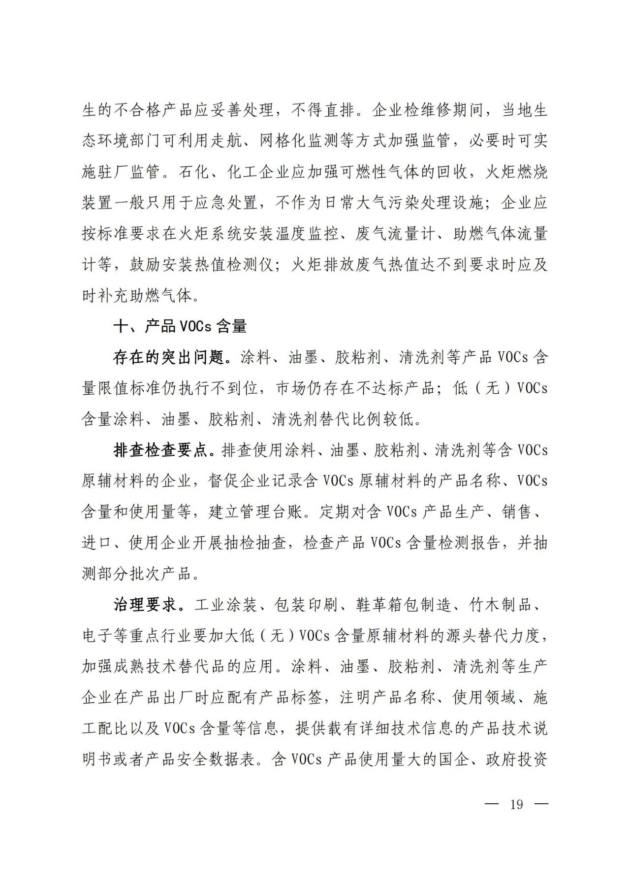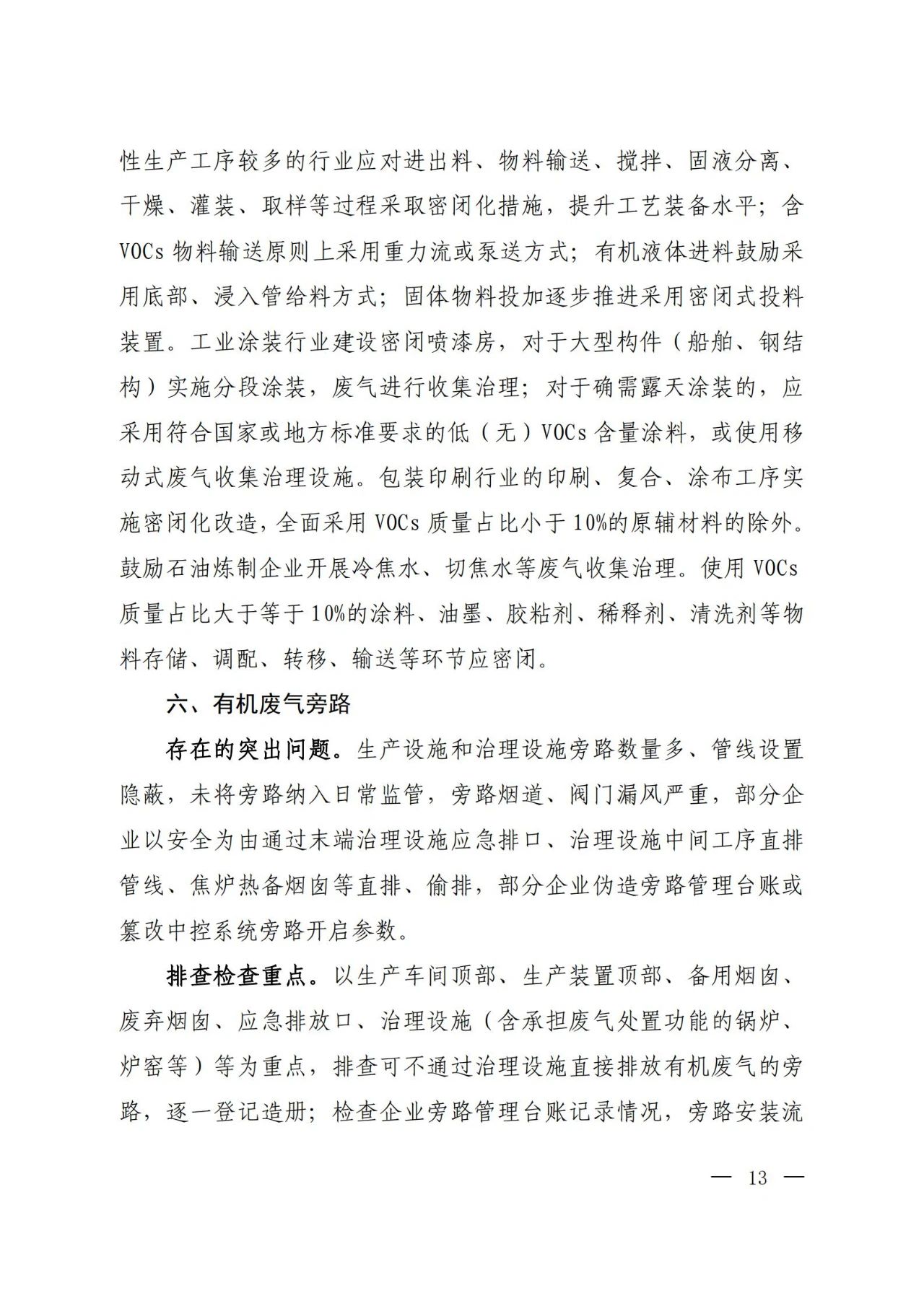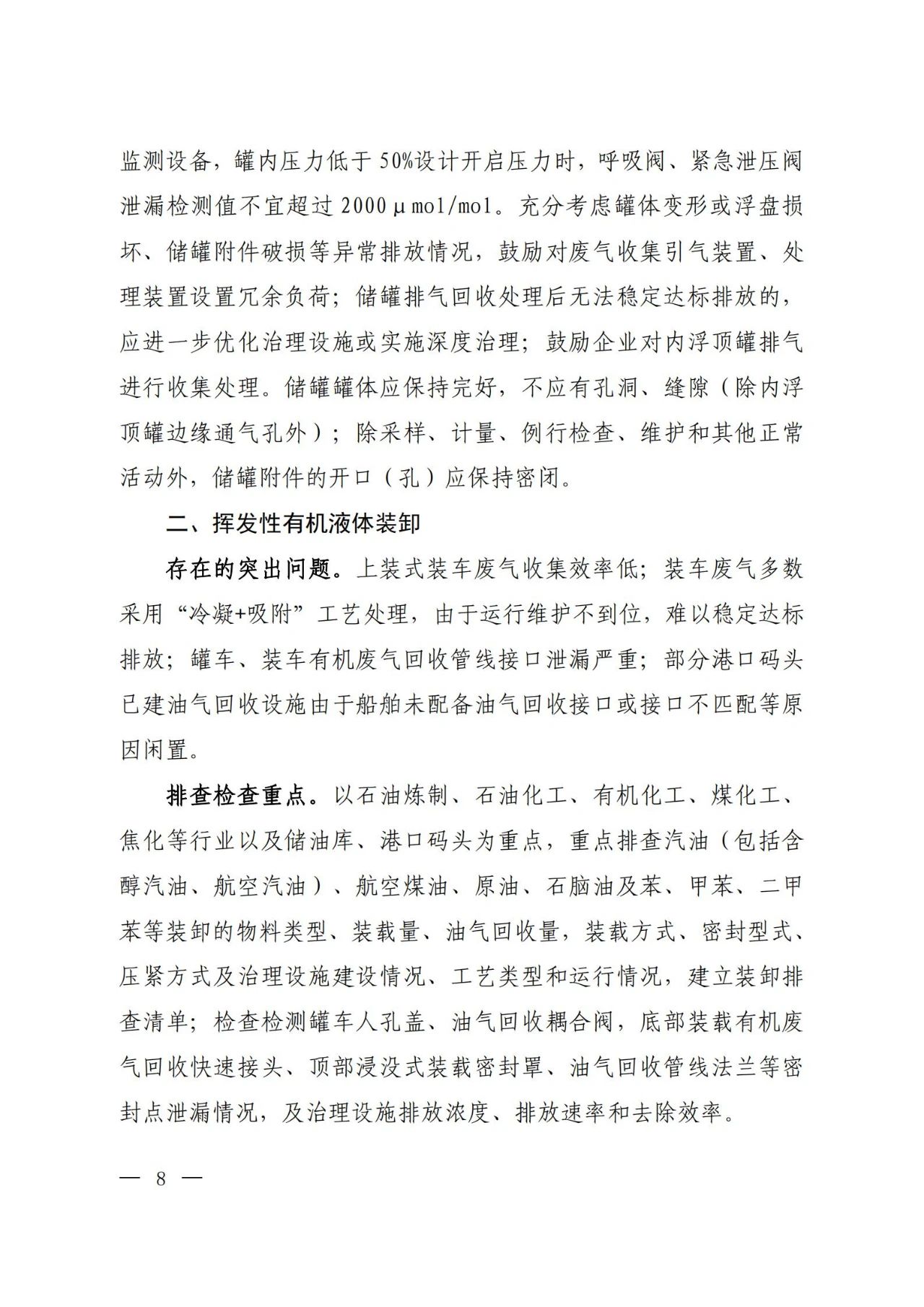 各地要以石油炼制、石油化工、合成树脂等石化行业,有机化工、煤化工、焦化(含兰炭)、制药、农药、涂料、油墨、胶粘剂等化工行业,涉及工业涂装的汽车、家具、零部件、钢结构、彩涂板等行业,包装印刷行业以及油品储运销为重点,并结合本地特色产业,组织企业针对挥发性有机液体储罐、装卸、敞开液面、泄漏检测与修复(LDAR)、废气收集、废气旁路、治理设施、加油站、非正常工况、产品VOCs含量等10个关键环节,认真对照大气污染防治法、排污许可证、相关排放标准和产品VOCs含量限值标准等开展排查整治,具体要求见附件。