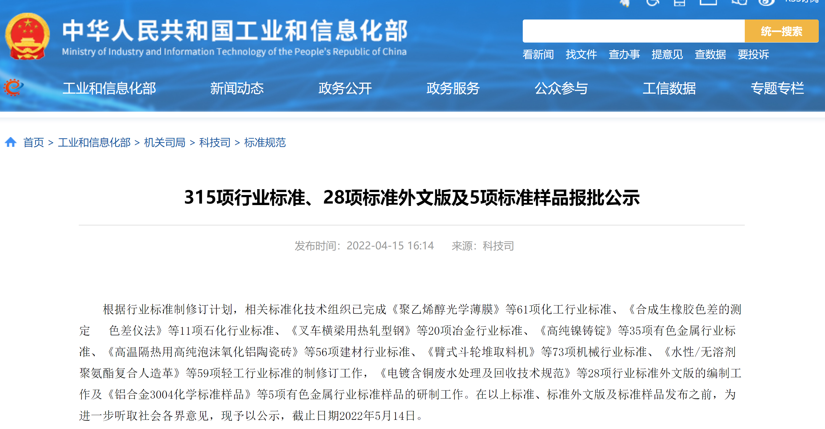 来源:工信部、标准网、VOCs前沿 转载于:北极星VOCs在线