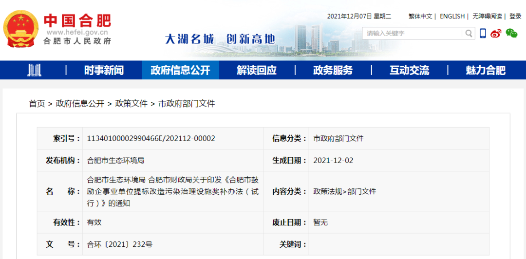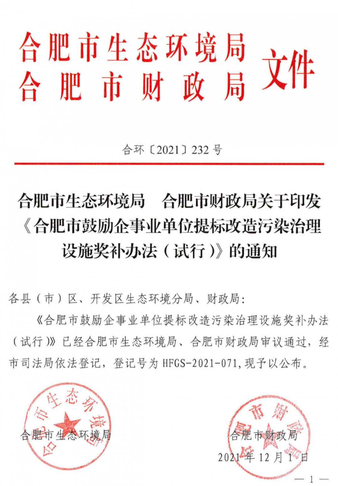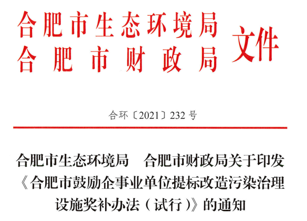近期,合肥市生态环境局会同合肥市财政局制定出台了《合肥市鼓励企事业单位提标改造污染治理设施奖补办法(试行)》(以下简称《办法》),现将主要内容解读如下: