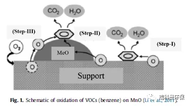 VOCs催化剂大致可分为贵金属催化剂、非贵金属氧化物催化剂和混合金属催化剂。金属氧化物催化剂价格便宜,抗中毒性强,但是不耐用且效率低。通常,金属氧化物负载在负载在适合的载体上,热稳定性强,比表面积高的载体是首选。