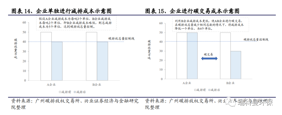 第一种情况,如果企业减排成本低于碳交易市场价时,企业会选择减排,减排产生的份额可以卖出从而获得盈利;