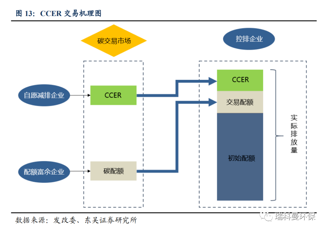 通过这一套设计,碳交易市场将碳排放内化为企业经营成本的一部分,而交易形成的碳排放价格则引导企业选择成本最优的减碳手段,包括节能减排改造、碳配额购买、或碳捕捉等,市场化的方式使得在产业结构从高耗能向低耗能转型的同时,全社会减排成本保持最优化。按照碳交易的分类,目前我国碳交易市场有两类基础产品,一类为政府分配给企业的碳排放配额,另一类为核证自愿减排量(CCER)。