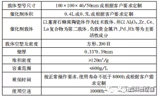 催化剂种类很多,目前VOCs处理一般选用较多的是蜂窝式贵金属催化剂,其载体一般为堇青石蜂窝陶瓷。下图为某公司生产的催化剂性能表仅供参考。