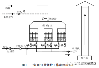 RTO( Regenerative Thermal Oxidation), 即蓄热式热氧化, 是一种配有蓄热床层的热力燃烧方式。蓄热燃烧系统主要由燃烧装置、蓄热室(内有蓄热体)、换向系统、排烟系统和连接管道五部分组成。