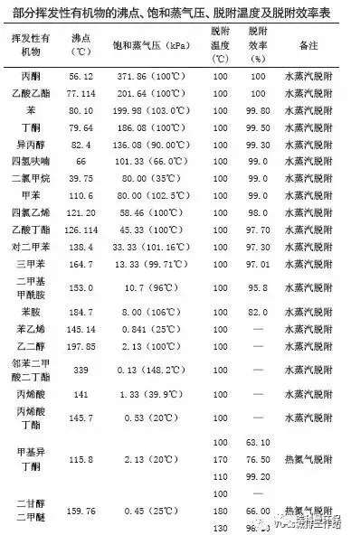 (1)脱附温度与饱和蒸气压的关系。从脱附原理上讲,吸附质从吸附剂表面脱附的根本原因是,吸附质分子必须克服吸附剂表面对它的引力,增大它脱离表面的推动力。也就是说,要想使吸附质分子从吸附剂表面脱附下来,就必须给它能量或推动力,使其能够从吸附剂表面“蒸发”到吸附剂孔道中,从而进入气相主体。而在通常采用的脱附方法中,加热脱附是给其提供能量,以增加分子的动能;吹扫脱附和降压(真空)脱附,都是为了降低吸附剂孔道中废气分子的分压,也就是蒸气压,给废气造成一个浓度差,从而给废气分子由吸附剂表面向气相转移提供一个推动力,这个推动力越大,废气分子的脱附速度就越快。所以,从这个理论出发就不难理解,吸附质的脱附温度是与其饱和蒸气压直接相关的,而与它的沸点无关。