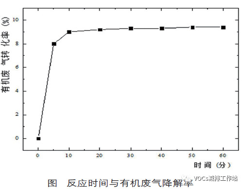 由上面的实验数据图可见,短时间内(1 秒钟左右时间),单独紫外光设备对VOCs 降解率很低。在单独UV 光解技术应用中,即使延长反应时间,对VOCs 的降解率也在10% 以内(正如国内某知名紫外线灯管厂所介绍的,没有在反应区留滞三秒以上,基本没有效果),不但满足不了工业治污应用,还产生很多副产物污染气体。