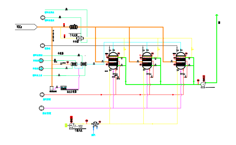 采用热氮气或饱和水蒸气脱附的往往搭配冷凝系统,来实现对VOCs的回收再利用。由于水蒸气载热量大,尤其是其潜热;且脱附温度适中,不会破坏有机物,因此水蒸气是最常用的脱附剂。