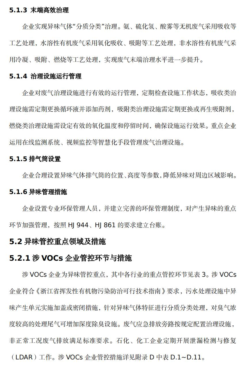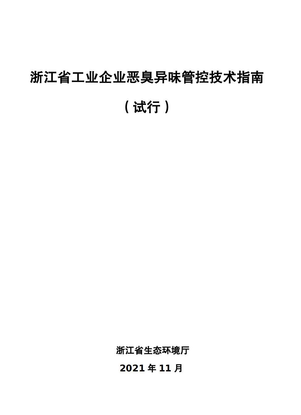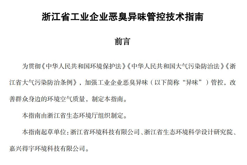 《浙江省工业企业恶臭异味管控技术指南(试行)》