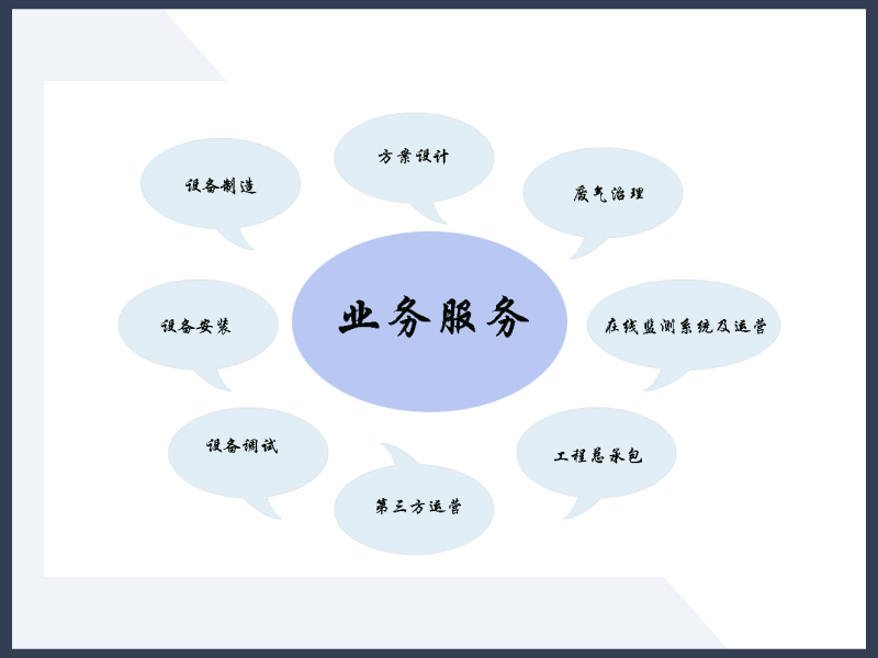 公司可提供烟气治理、工业废气治理及其在线监测、处理设施第三方运营相关的咨询、规划、设计整体解决方案。