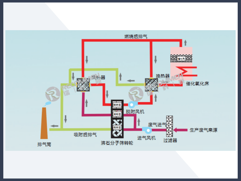 转轮吸附浓缩+催化燃烧工艺流程图